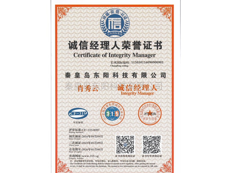 誠(chéng)信經(jīng)理人榮譽(yù)證書(shū)