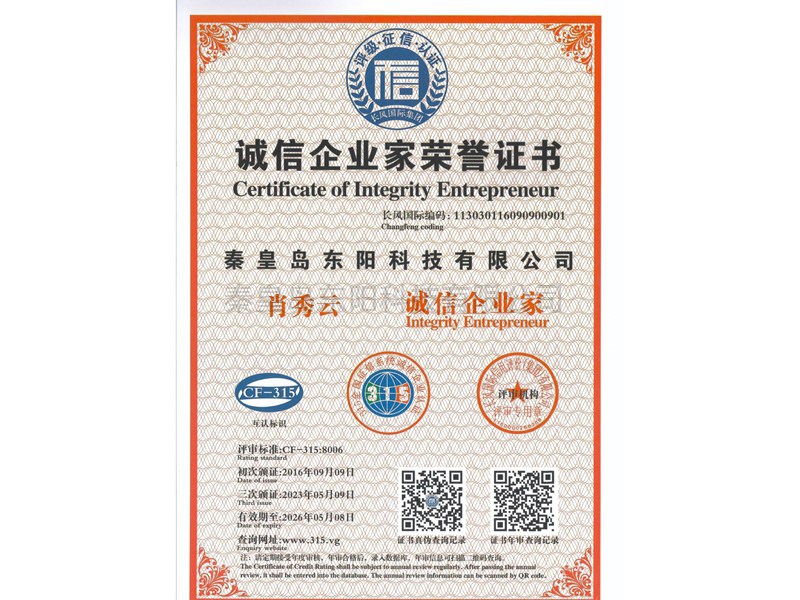 誠(chéng)信企業(yè)家榮譽(yù)證書(shū)