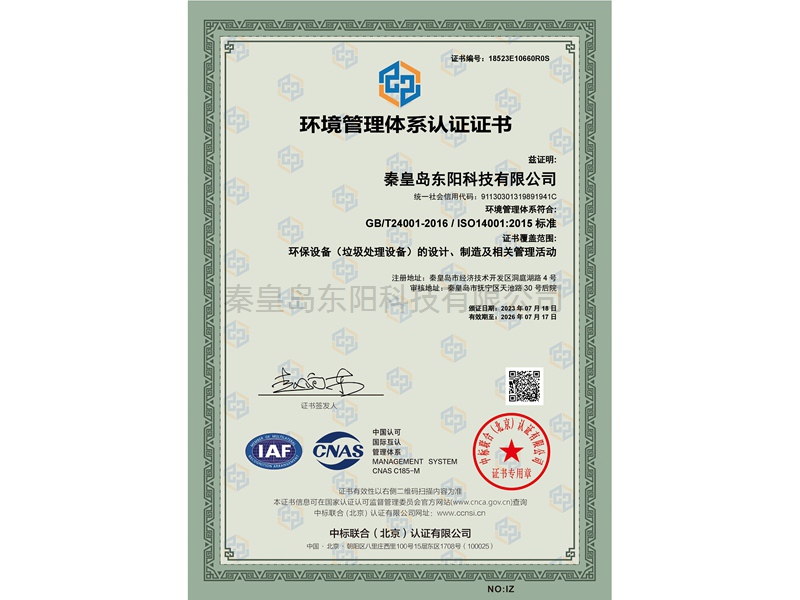 環(huán)境管理體系認(rèn)證證書(shū)