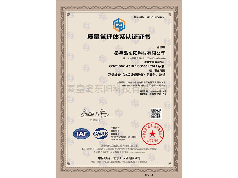 質(zhì)量管理體系認(rèn)證證書(shū)
